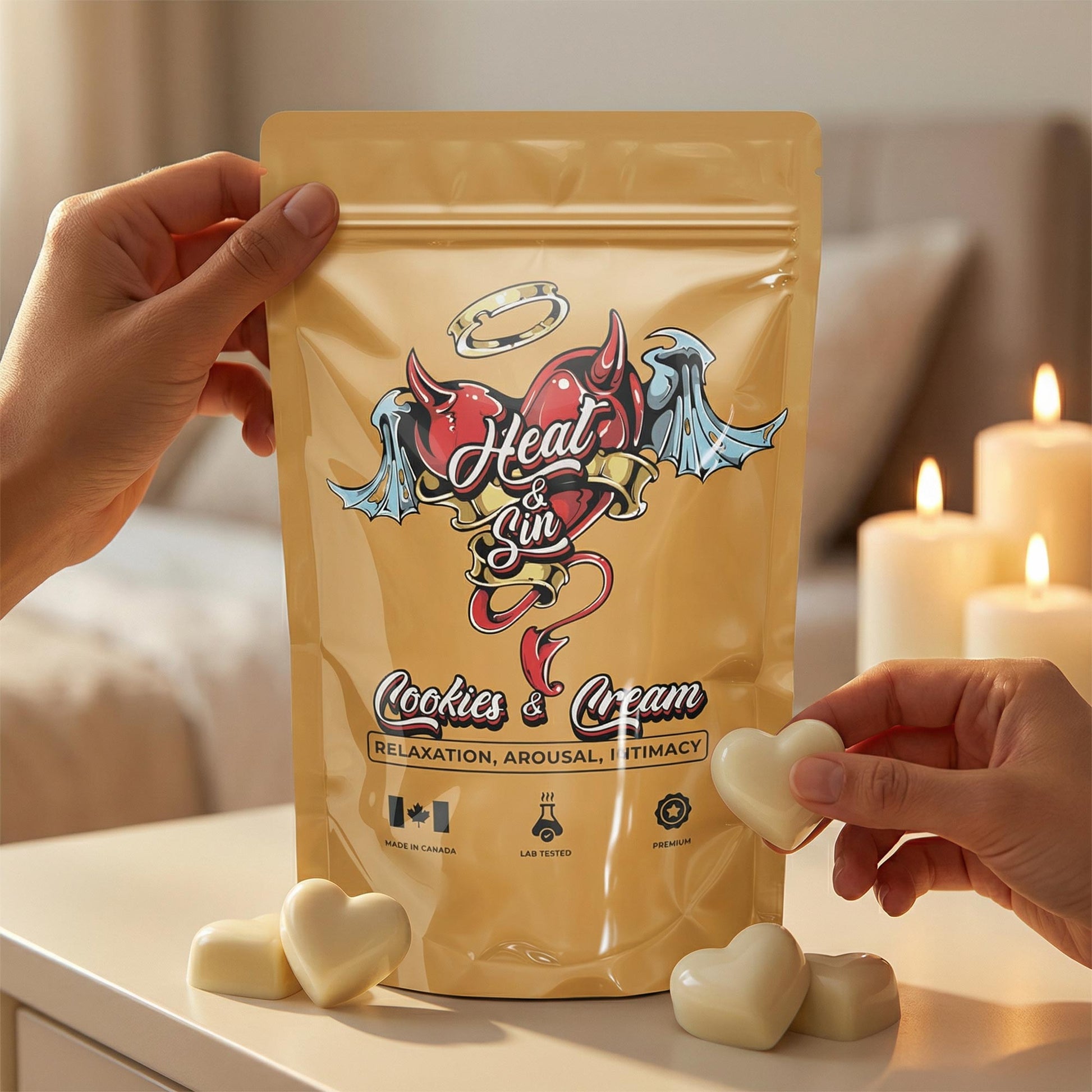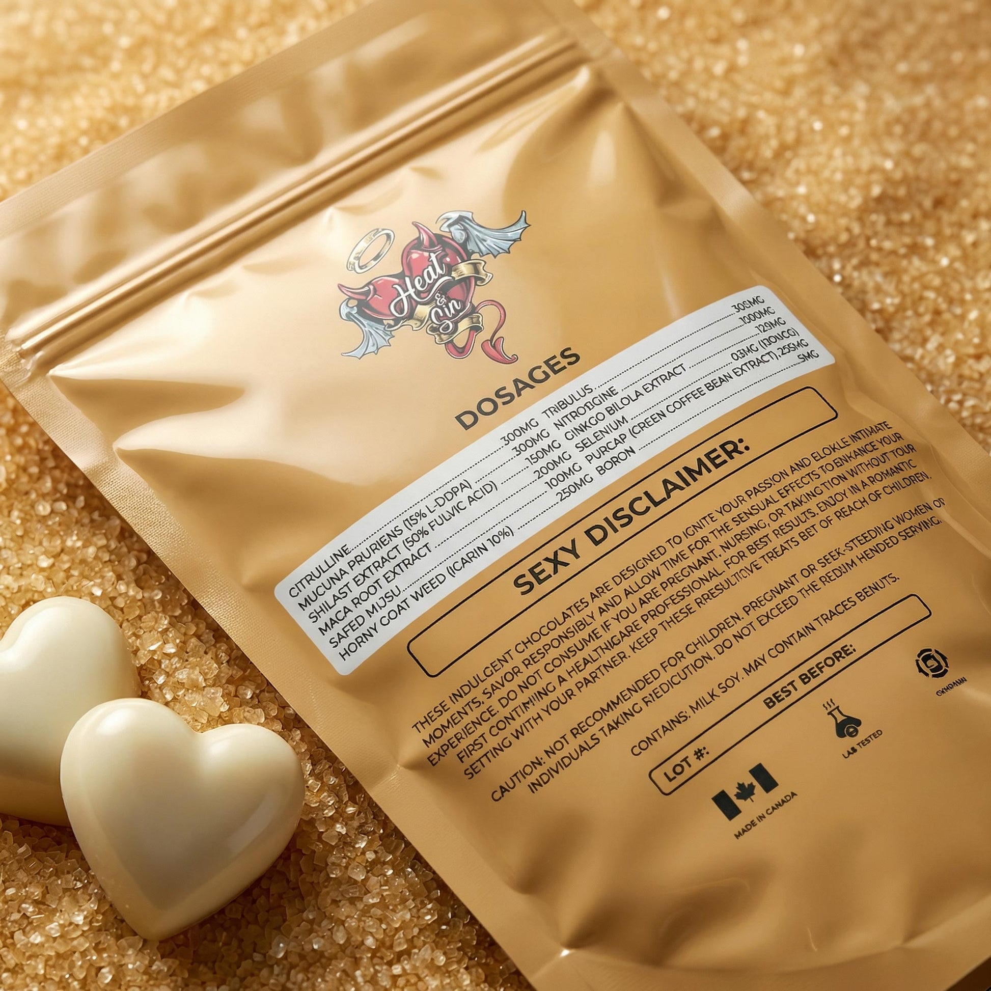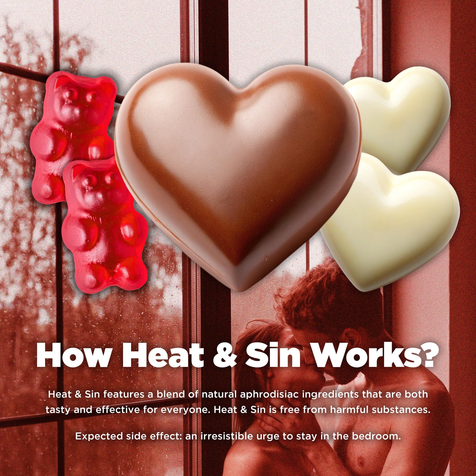 For best results, enjoy Heat & Sin with your partner at least 30 minutes before intimacy. While effects may not be immediate for everyone, this romantic chocolate works behind the scenes to enhance connection and arousal—especially with regular use.